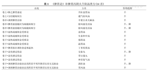 一为补脾胃泻阴火升阳类方,共14首,见表1。