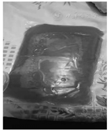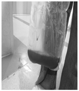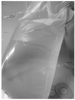患儿女,年龄14岁,2008年发现蛋白尿,2011年发现血肌酐升高、肾功能异常,2018年1月进入慢性肾脏病5期,2018年2月开始接受规律腹膜透析替代治疗(CAPD),超滤量600~700 ml/d,尿量约500 ml/d。曾数次出现血性腹膜透析液,多为淡洗肉水色,无腹痛、发热、腹泻等不适,多于月经期出现,未特殊处理,持续2 d左右可自行缓解,每3个月监测子宫及附件彩色超声无异常。1 d前(非月经期)出现血性腹膜透析液,呈鲜红色(图1,图2),引流通畅,伴下腹轻度疼痛,住院治疗。体格检查: 血压112/80 mmHg, 神志清,精神反应一般,无水肿,睑结膜无苍白,口唇尚红润,心肺无异常,腹软,左下腹压痛,无反跳痛。辅助检查示:血红蛋白128 g/L,尿素15.3 mmol/L,肌酐673.7 μmol/L,尿酸376.6 μmol/L,血钾3.50 mmol/L,血尿淀粉酶、凝血功能、动脉血气分析、肝功能、粪常规无异常。腹膜透析液常规检查示:淡黄色,微浑,李凡他试验阴性,白细胞计数0.705×109/L,单个核细胞8.1%,多个核细胞91.9%,可见新鲜红细胞5~10/HP。 腹膜透析液生化检查无异常。影像学检查:彩色超声示:左侧卵巢(33.8 cm×18.9 mm)旁非均质包块(66.4 mm×44.7 mm×52.7 mm),不除外出血。盆腔CT示:(1)盆腔内子宫左上方略偏前囊状混杂密度影,内伴出血;(2)盆腔积液;(3)膀胱偏下点状高密度影。予以腹膜透析液反复冲洗2 d后腹透液颜色变淡(图3)。复查腹膜透析液常规检查示:清亮, 清晰透明,李凡他试验阴性,白细胞计数0.271×109/L,单个核细胞14%,多个核细胞86%,偶见新鲜红细胞5~10/HP。第5天至外院行肾移植术,术中探查左侧卵巢支持卵巢囊肿破裂出血,予以手术切除。肾移植手术过程顺利,术后恢复顺利,监测肾功能、血常规正常。