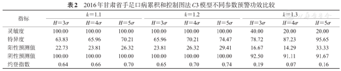 2016年甘肃省手足口病累积和控制图法C3模型不同参数预警功效比较