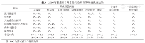 优选甘肃省常见急性传染病的预警阈值,提高预警功效。
