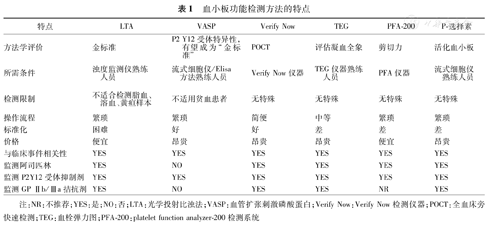 注:NR:不推荐;YES:是;NO:否;LTA:光学投射比浊法;VASP:血管扩张刺激磷酸蛋白;Verify Now:Verify Now检测仪器;POCT:全血床旁快速检测;TEG:血栓弹力图;PFA-200:platelet function analyzer-200检测系统