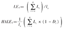 其中lx为x岁时尚存人数,Li是x~(x+5)岁间的寿命表队列生存的人年数。w为寿命表中最后一个开区间的年龄段。Di为成年居民伤残测度。
