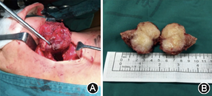 手术根治性切除是MEC主要的治疗手段,应根据肿瘤的级别、累及范围及转移情况制定具体的手术方式。需要注意的是,高级别MEC还需扩大切除范围,建议保持1.5~2.0 cm的安全切缘距离,且其隐匿性淋巴转移的比例高达30%~50%,因此更应做常规淋巴清扫[7]。舌根部MEC常用入路包括口内进路、下颌进路以及舌骨进路,相较于前两者,舌骨进路切口隐蔽,暴露充分,且最大限度的保存了舌体,有利于术后功能恢复。既往大多舌根部恶性肿瘤经口内进路切除效果不佳,但近年来,经口内的机器人手术开始用于切除舌根部肿瘤,并取得了不错的效果[8]。手术切除范围是基于肿瘤的范围及波及的周围结构而定,在完整切除舌根原发病灶的同时,应将受累及的病变结构一并切除,最后根据缺损的大小酌情采用相应的修复方式同期修复。