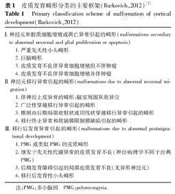 皮质发育畸形分类的主要框架(Barkovich,2012)[2]