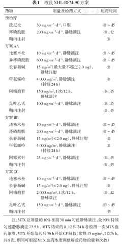 | 甲氨蝶呤 | 4 000 mg/m2,静脉滴注(持续24 h) | d1 | |