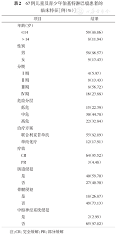 67例儿童及青少年伯基特淋巴瘤患者的临床特征[例(%)]