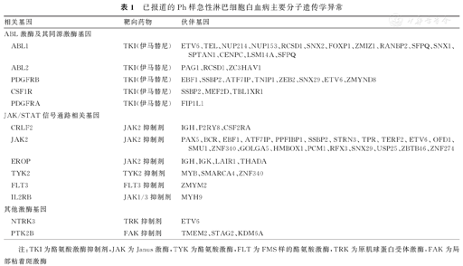 已报道的Ph样急性淋巴细胞白血病主要分子遗传学异常