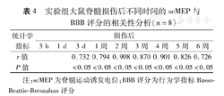 探讨大鼠脊髓损伤功能评价指标运动诱发电位(MEP)和Basso-Beattie-Bresnahan (BBB)评分的相关性。