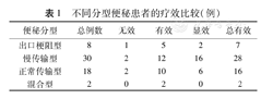 | 便秘分型 | 总例数 | 无效 | 有效 | 显效 | 总有效 |