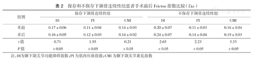 保存和不保存下颌骨连续性组患者手术前后Fricton指数比较(