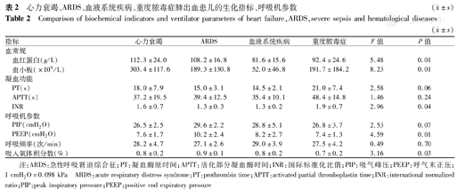 Comparison of biochemical indicators and ventilator parameters of heart failure,ARDS,severe sepsis and hematological diseases(