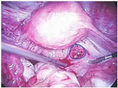 随着B超诊断技术的不断发展,目前输卵管间质部妊娠破裂导致腹腔内大出血的概率明显降低,对于包块较小的输卵管间质部妊娠和宫角妊娠,通过经阴道彩色多普勒超声检查能较准确地做出诊断[11]。病例2,术前B超反复提示:左侧宫角或输卵管间质部妊娠可能,可术中宫腹腔镜均未见妊娠部位,最终在B超引导下精准地切开左侧输卵管间质部,找到了绒毛。蔡秋娥等报道[12]在阴道B超的引导下,见闭孔处的妊娠并取出病灶。所以术中经阴道B超的引导寻找异位妊娠部位是一个很有效的方法。