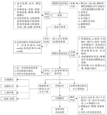 风险评估包括病史采集、体格检查、实验室检查、血压水平分级、心血管风险评估。