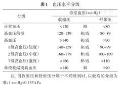 注:当收缩压和舒张压分属于不同级别时,以较高的分级为准;1 mmHg=0.133 kPa