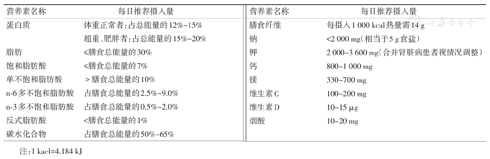 对于每日能量摄入在1 600~2 400 kcal(1 kcal=4.184 kJ)的18岁及以上成年人,主要类别食物每日摄入量如下:谷类食物200~300 g、全谷物和杂豆类50~150 g、薯类50~100 g,蔬菜300~500 g,水果200~350 g,水产40~75 g,畜禽肉40~75 g,蛋类40~50 g,奶制品300 g。另外每周摄入大豆105~175 g,坚果50~70 g。