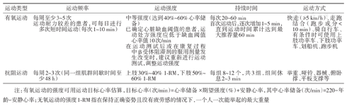 | 整理活动 | 至少5~10 min低至中等强度的心肺和肌肉耐力活动 |