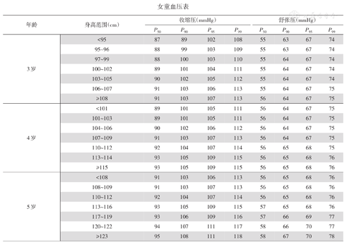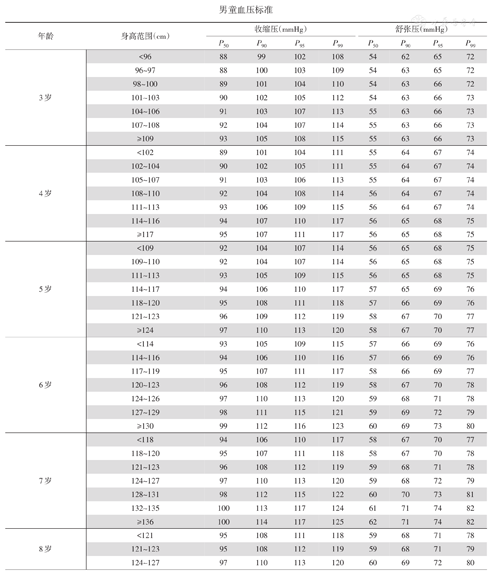 | 8岁 | 127~131 | 96 | 109 | 113 | 120 | 60 | 69 | 72 | 80 |