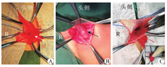 腹股沟斜疝术中可能出现和彩色多普勒超声体征不符合的情况,日间外科出现5例,3例为滑疝,游离疝囊壁后,卵巢输卵管及血管在疝囊壁外侧,证实为滑疝。加深麻醉后,将卵巢输卵管与疝囊壁分离后,放入腹腔,保护好卵巢输卵管血供,重新修补疝囊壁。1例为疝囊内出现阑尾,与家属沟通后加深麻醉加做阑尾切除术。1例疝囊后壁极度松弛,术中充分游离后壁疝囊,腹膜高位结扎后,切除多余疝囊,加强后壁以避免复发。住院病房同期出现2例,1例为疝囊巨大,1例为疝囊过小寻找困难(图1)。