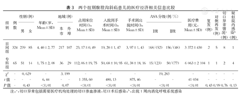 两个组别腹股沟斜疝患儿的成本-效果比较