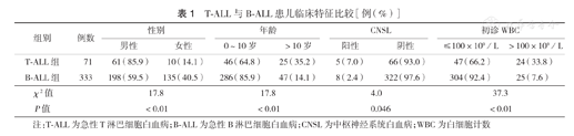 注:T-ALL为急性T淋巴细胞白血病;B-ALL为急性B淋巴细胞白血病;CNSL为中枢神经系统白血病;WBC为白细胞计数