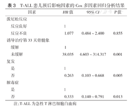 T-ALL患儿预后影响因素的Cox多因素回归分析结果
