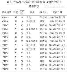 2016年江苏省江阴市新桥镇14例伤寒病例基本信息
