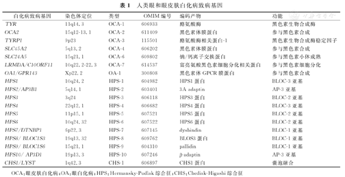 OCA:眼皮肤白化病;OA:眼白化病;HPS:Hermansky-Pudlak综合征;CHS:Chediak-Higashi综合征