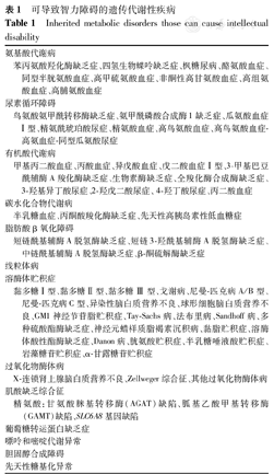 智力障碍是儿童常见的一种致残性疾病,在人群中的发病率为1%~3%,任何影响儿童大脑发育的因素均可导致儿童出现不同程度的智力障碍[1]。智力障碍可严重影响患儿的生存质量,给家庭及社会带来沉重的经济负担。因此,早期做好病因诊断、早期干预,对于改善智力障碍患儿的预后及通过产前诊断阻止智力障碍患儿的出生具有重要意义[2]。智力障碍的病因非常复杂,分为非遗传性病因和遗传性病因,遗传性病因约占2/3,包括染色体异常、单基因病、多基因病/表观遗传异常、遗传代谢病等,文献报道可诊断的遗传代谢病占智力障碍患者病因的1%~5%[3,4]。随着生化诊断技术及基因分析技术的日益发展,可诊断、可治疗的遗传代谢病日益增多,给智力障碍患儿的病因治疗带来了希望。因此,遗传代谢病导致的智力障碍越来越受到重视,明确病因对于防治儿童智力障碍有重要意义。现总结目前已知可能导致智力障碍的多种遗传代谢病,以提高临床医师对本类疾病临床特点的了解及认识。
