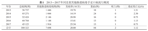 2013-2017年河北省其他肠道病毒手足口病流行概况