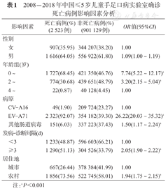 2008-2018年中国≤5岁儿童手足口病实验室确诊死亡病例影响因素分析