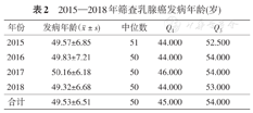 2015—2018年筛查乳腺癌发病年龄(岁)