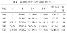 3.乳腺癌的组织学类型及TNM分期。乳腺癌的组织学类型及TNM分期是外科医师选择治疗手段的重要依据之一,也与乳腺癌的预后密切相关[12]。发达国家由于乳腺癌筛查覆盖面高,大约70%的新发病例为0期或Ⅰ期,反之在欠发达国家由于筛查机制不完善,大约有75 %的乳腺癌患者被诊断为Ⅲ、Ⅳ期[13]。在北京某家医院16年来的病例资料表明,原位癌有增加趋势,0期(原位癌)和Ⅰ期乳腺癌比率上升趋势显著,Ⅲ期乳腺癌比率呈下降趋势[14]。我们基于全省农村地区的大样本筛查结果2015—2018年ⅡA及以下乳腺癌的比例分别为0期15例(5.93%)、Ⅰ期85例(33.60%)、ⅡA期94例(37.15%),4年合计为76.68%,略高于佛山市事业单位的35岁以上妇女[15]。原位癌患者的发病年龄低于非原位癌患者,原位癌检出比例上升。我省2015—2017年原位癌/非原位癌的构成比例差异无统计学意义,考虑原因可能是年份区间跨度短有关。《中国妇女发展纲要》(以下简称"纲要")对宫颈癌、乳腺癌筛查的要求是覆盖到80%的人口。福建省2015、2016年为3.6万农村妇女进行免费乳腺癌筛查,为缩小并达到"纲要"要求,2017年起将筛查范围扩增到17万,然而由于农村地区人口基数大,尚未能实现全面免费筛查。按照筛查方案要求,我们在筛查伊始制定详细方案,首先进行目标人群的摸底调查,尽量使受检范围惠及到既往从未接受过乳腺癌筛查的妇女;其次通过专题培训结合专家到基层"蹲点"指导的方式,不断提升初筛机构及接诊机构的服务能力;再次,在筛查的同时针对农村妇女开展有的放矢的健康教育,广泛宣传国家的惠民政策,使其充分认识乳腺癌筛查的重要性及预防措施,提高乳腺癌防治的知识知晓率,培养正确的生活方式,积极主动参与筛查。加入2018年数据后,2015—2018年总体原位癌/非原位癌的构成比例,原位癌构成比例整体上呈现上升趋势,说明我省的乳腺癌筛查工作初见效能,有更多的早期癌患者能被早期诊断。实现"三级预防"的战略思想,提高原位癌检出比例,更提升农村妇女的生活质量。