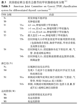 美国癌症联合委员会推荐的甲状腺癌临床分期[22]