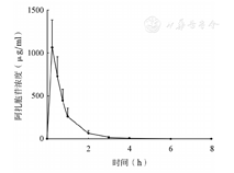 单次皮下注射75 mg/m2的国产阿扎胞苷后,药物以较快的速度吸收入体内,药峰时间(Tmax)中位值为0.27 h,平均达峰浓度(Cmax)为1 063 μg/L,平均暴露量(AUC0-∞)为770 h*μg/L,平均末端消除半衰期(t½)为0.5 h,平均血浆总清除速率(CL/F)为171 L/h。本试验药代动力学行为和参数与中国人群的原研药数据基本一致(图2,表6)。