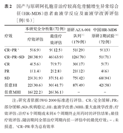 | 疗效 | 本研究全分析集(72例) | 原研AZA-001队列[5](179例) | 中国HR-MDS原研2期试验[10] (72例) | |