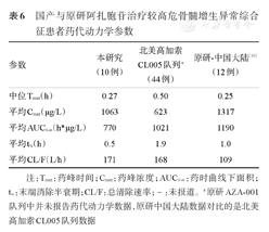 注:Tmax:药峰时间;Cmax:药峰浓度;AUC0-∞:药时曲线下面积;t½:末端消除半衰期;CL/F:总清除速率;-:未报道。a原研AZA-001队列中并未报告药代动力学数据,原研中国大陆数据对比的是北美高加索CL005队列数据