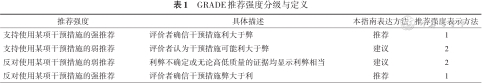 GRADE推荐强度分级与定义