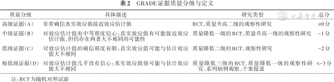 GRADE证据质量分级与定义