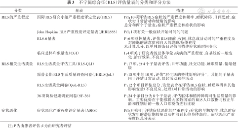 不宁腿综合征(RLS)评估量表的分类和评分方法
