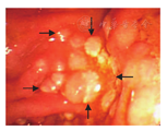 诊断后,患者行PET-CT检查除十二指肠降部病变外,其他部位无病灶,未接受其他治疗,给予观察随访。10个月后复查胃镜,结果示十二指肠多发颗粒状隆起区面积未见明显扩大,继续随访观察。