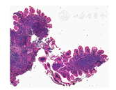 女性,43岁,2019年10月无明显诱因出现上腹部不适,间断恶心、厌食。查体:精神尚可,面容正常,体表未触及淋巴结肿大,全身皮肤无皮损表现,肝脾未触及增大。行胃镜检查示:十二指肠降部散在多发结节状隆起(图1),色白,片状分布,大小10 cm ×3 cm。钳夹部分组织行病理学活组织检查。
