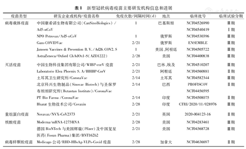 | 疫苗类型 | 研发企业或机构/疫苗名称 | 免疫次数/间隔时间(d) | 地点 | 临床批号 | 临床试验分期 |