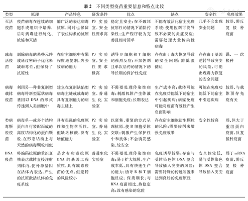 | 类型 | 原理 | 产品特色 | 研发条件 | 优点 | 缺点 | 安全性 | 免疫效果 |