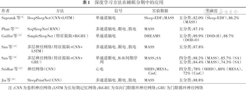 深度学习方法在睡眠分期中的应用