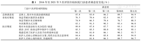 基于2016年至2021年5次"进一步改善医疗服务行动计划"第三方评估的妇幼医院患者调查结果,对满意度指标进行描述性趋势分析,并基于第5次评估结果分析满意度的影响因素。