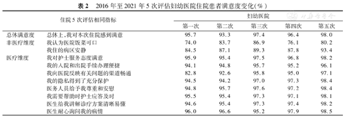 2016年至2021年5次评估妇幼医院住院患者满意度变化(%)