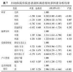 妇幼医院住院患者就医满意度的多因素分析结果