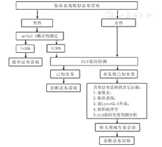 位于Xq22.1的致病基因GLA突变的检测对明确诊断及筛查发现新患者有重要意义。根据家族史情况,推荐进行家系基因检测、绘制遗传图谱。目前已报道近1 000种GLA突变,但仅有80%左右患者可检测到致病基因突变或良性基因突变,需多方面综合分析。相同的基因突变可能存在不同表型。临床表型受年龄、性别及基因突变等多个因素影响。女性患者因存在X染色体随机失活,GL-3的沉积程度不一,故临床表现轻重不同。基因检测还有助于指导疾病治疗。现已研发合成的药物伴侣米加司他(Migalastat),对40%的基因突变患者有效[11]。
