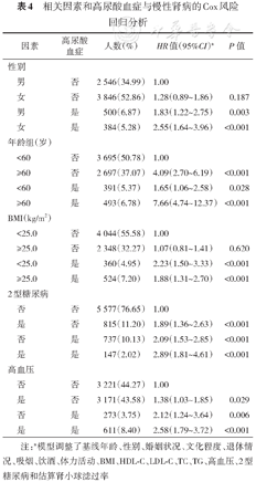 高尿酸血症与慢性肾病的Cox风险回归分析