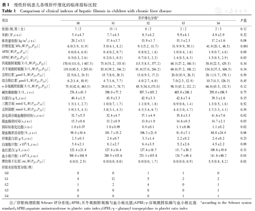 Comparison of clinical indexes of hepatic fibrosis in children with chronic liver disease
